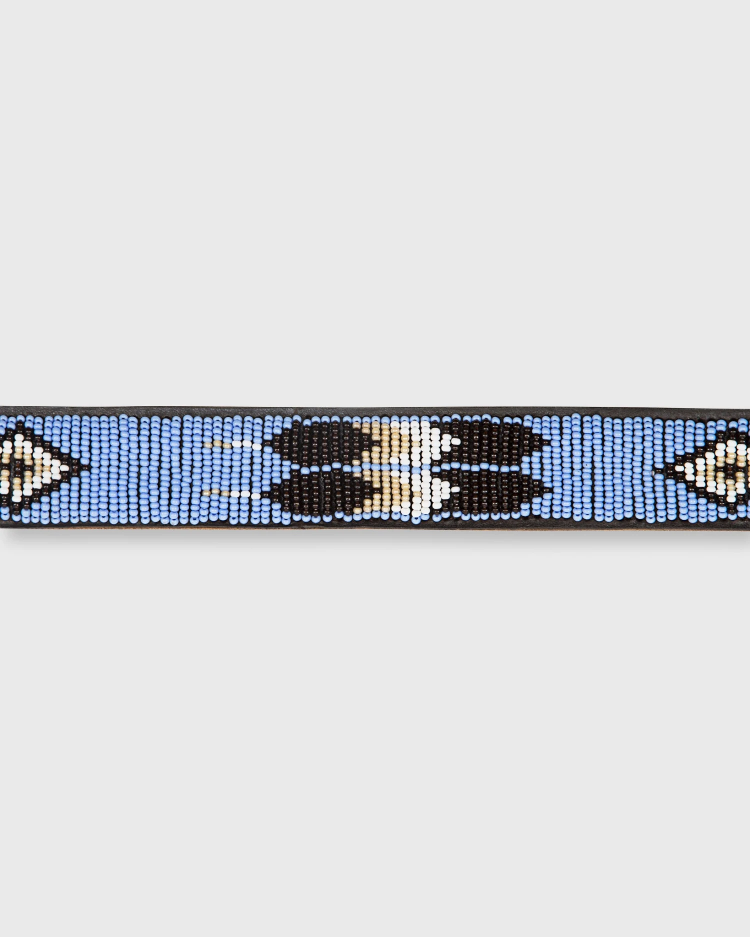 1.25″ African Beaded Belt In Sky/Dark Brown/White Feather