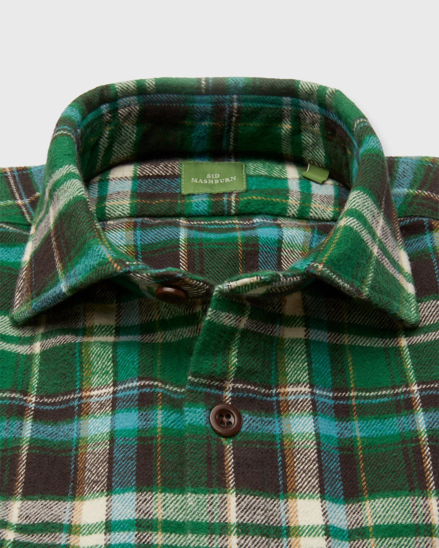 Band-Hem Work Shirt In Green/Brown/Sky Plaid Twill