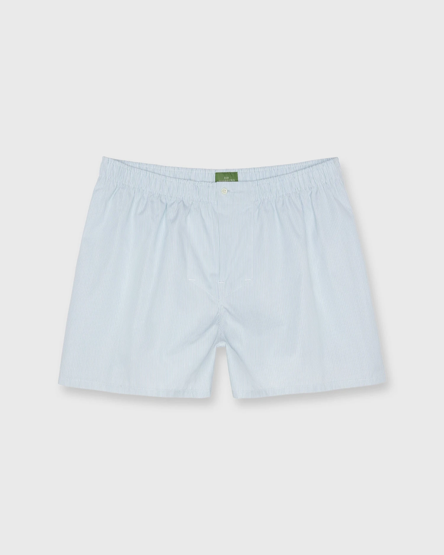 Button-Front Boxer Short In Blue/Green/White Pencil Stripe Poplin