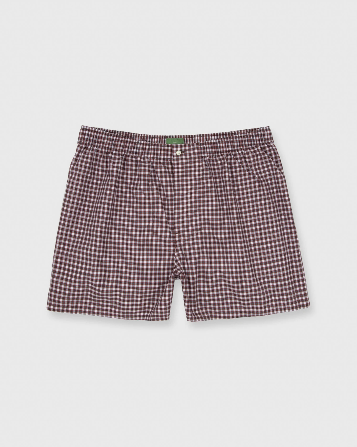 Button-Front Boxer Short In Navy/Burgundy Check Poplin