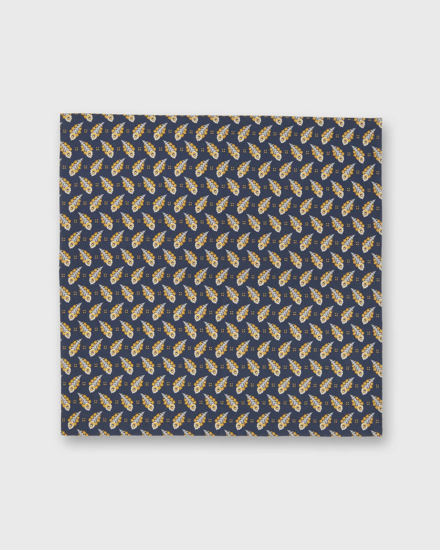 Cotton Print Pocket Square In Navy/Gold Paisley Feather Liberty Fabric