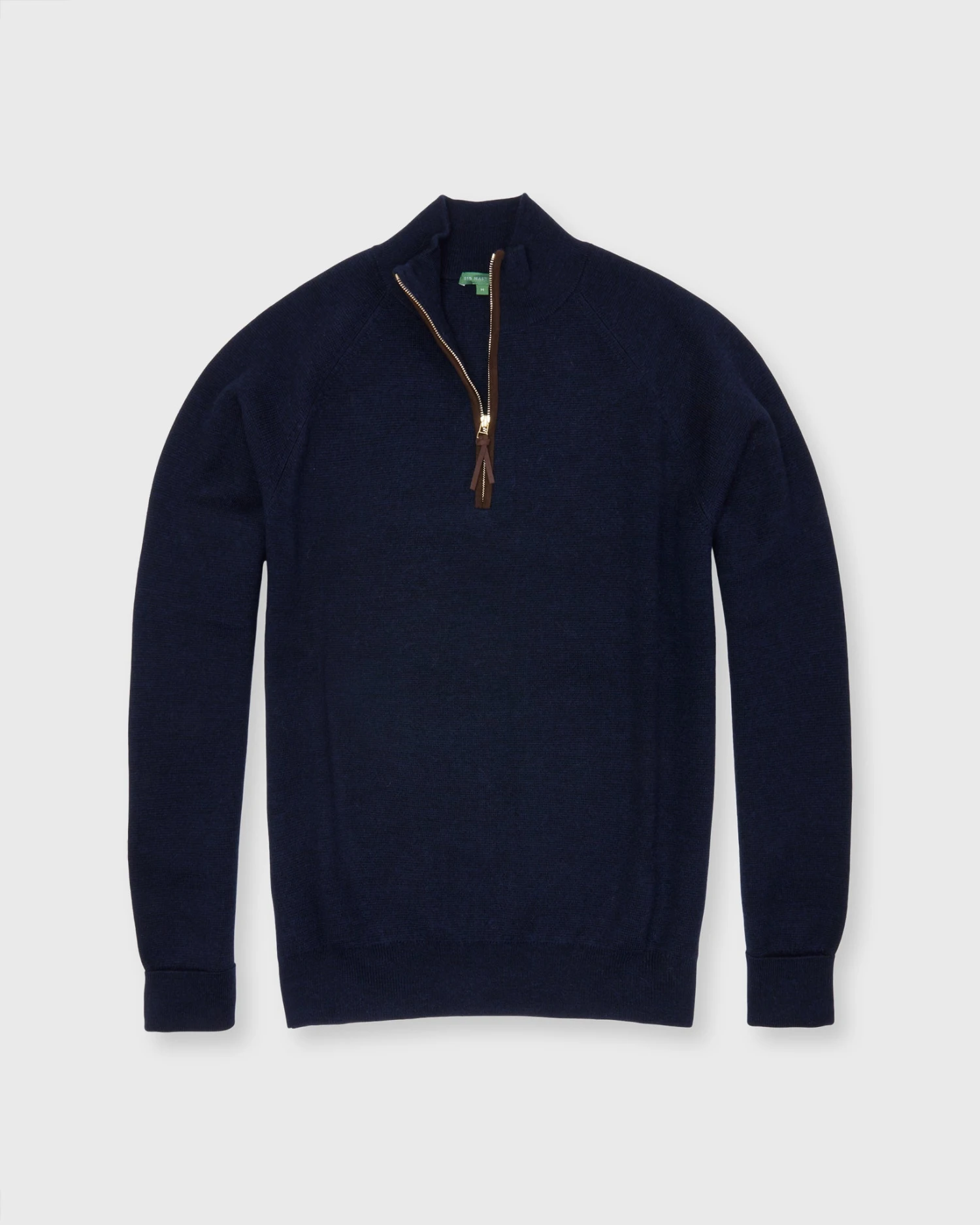 Half-Zip Milano-Stitch Sweater In Navy Extra Fine Merino