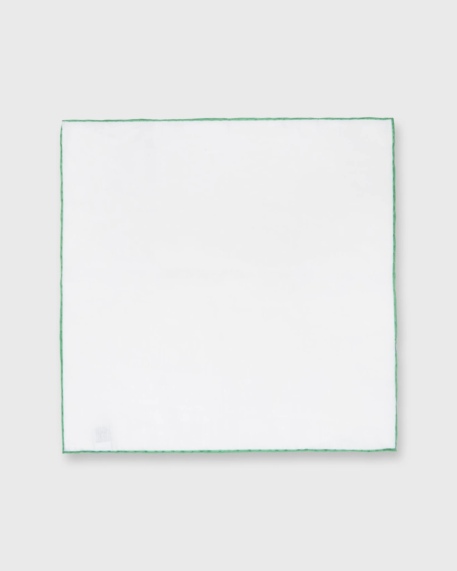 Hand-Rolled Pocket Square In White Cotolino/Light Green Edge