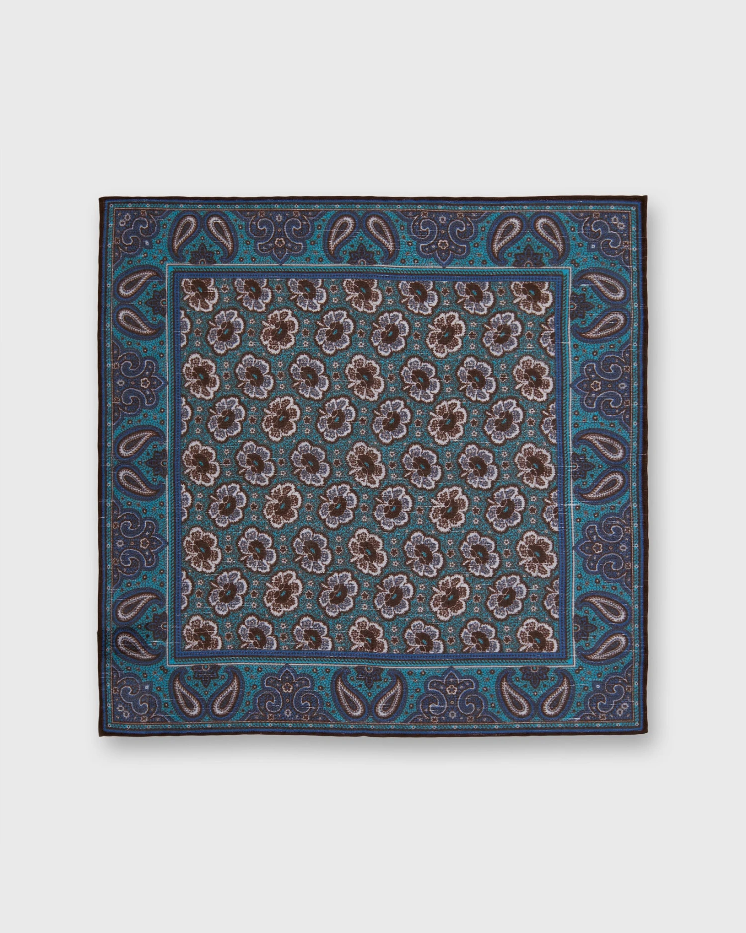 Linen/Cotton Print Pocket Square In River/Brown Paisley