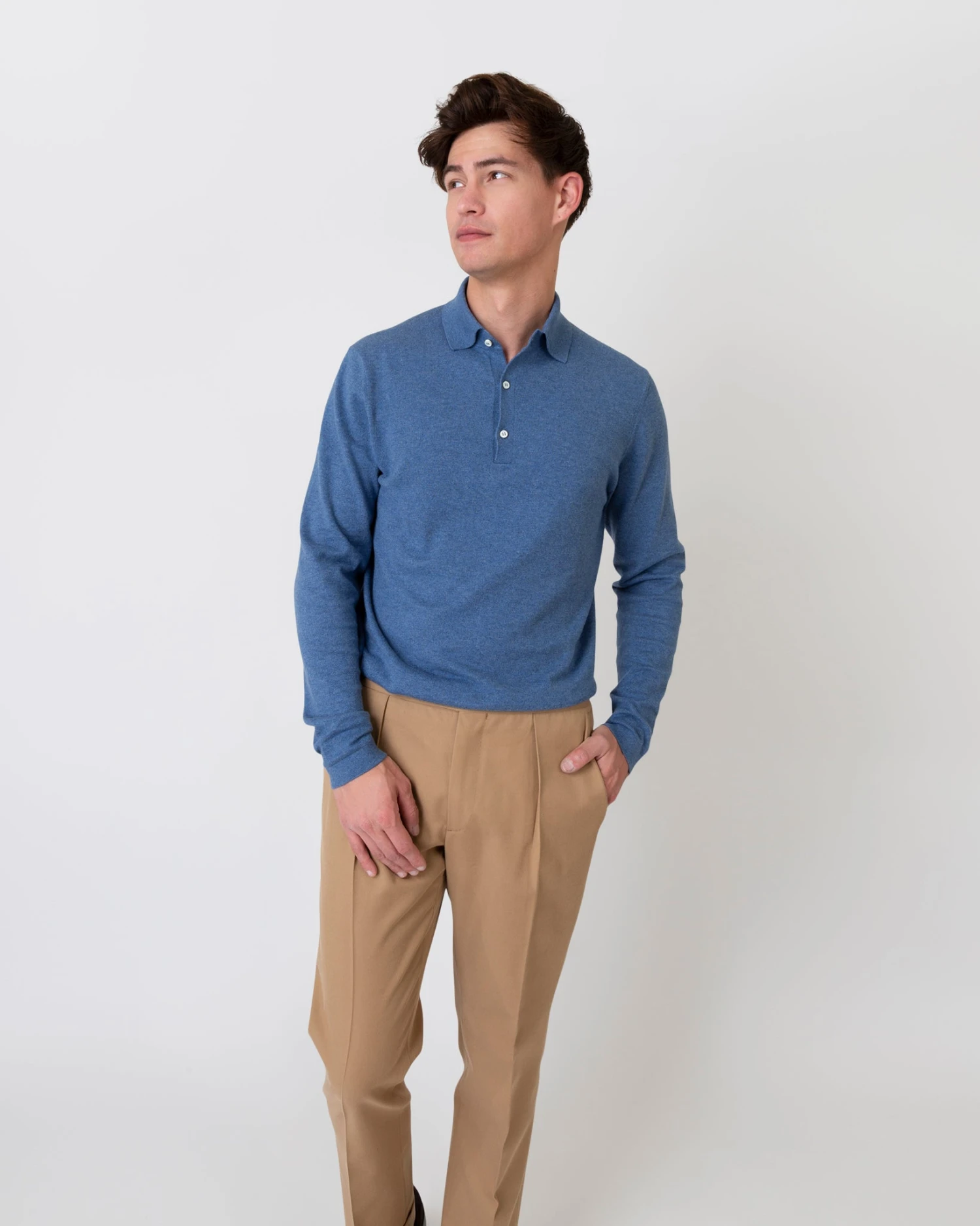 A sweater-knit polo to fulfill all your seventies-tennis-star dreams… in a long-sleeved version, by popular request! Mostly cotton with a touch of cashmere in the mix, the knit is sporty and luxe at the same time, plus lightweight enough for transition weather. The fit of the Rally is much slimmer than our standard polo, with a trimmer body and sleeve.