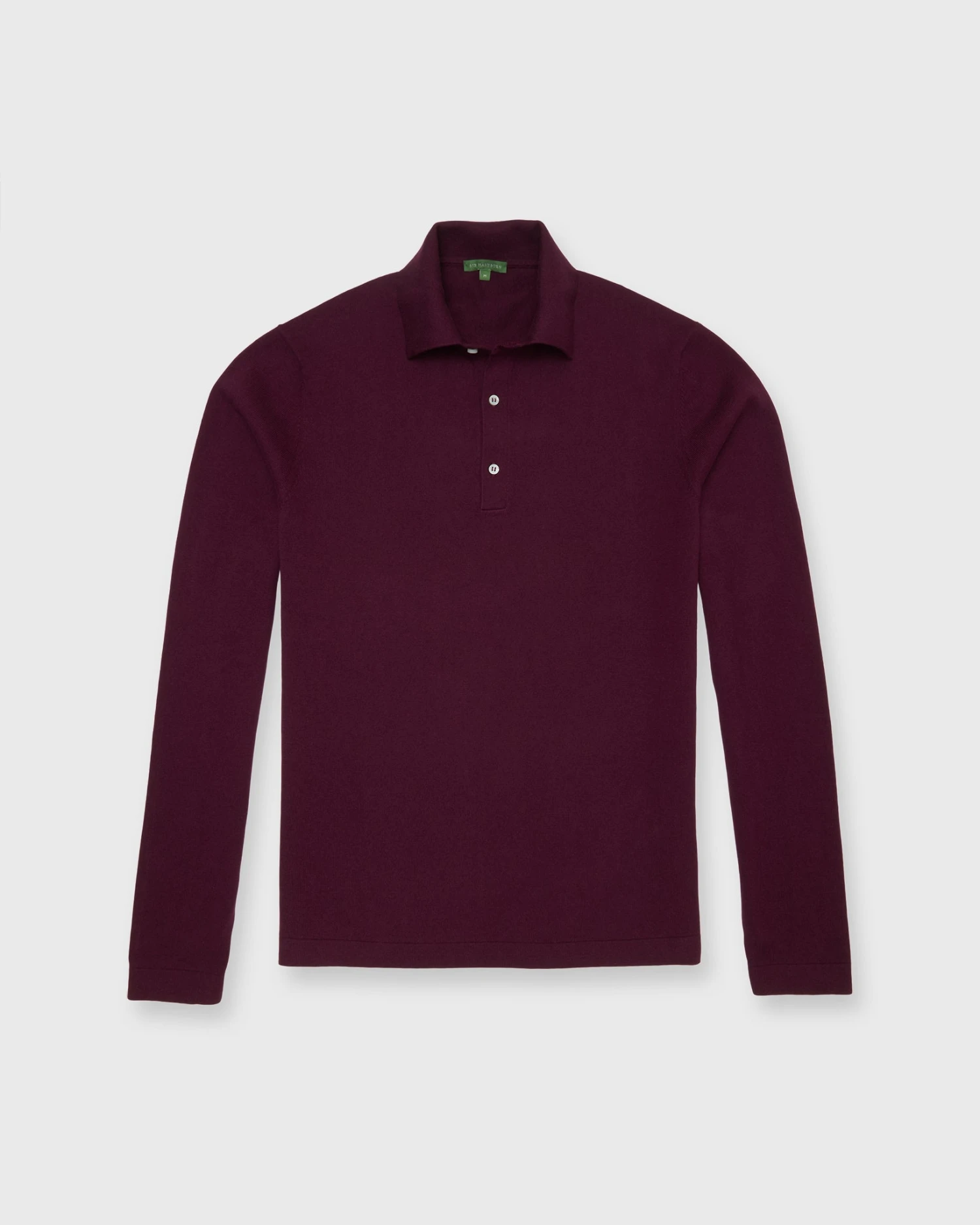 Long-Sleeved Rally Polo Sweater In Plum Cotton/Cashmere