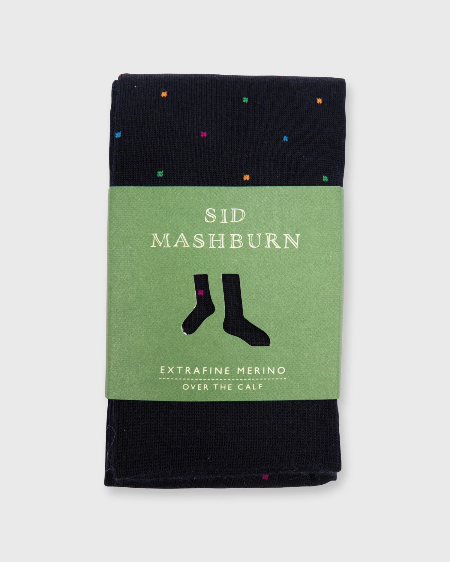 Over-The-Calf Dress Socks In Navy/Multi Dot Extra Fine Merino