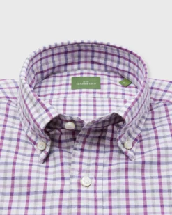 Button-Down Sport Shirt In Lavender/Navy/Forest Tattersall Poplin