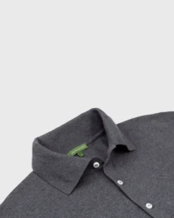Long-Sleeved Rally Polo Sweater In Ashe Grey Cotton/Cashmere