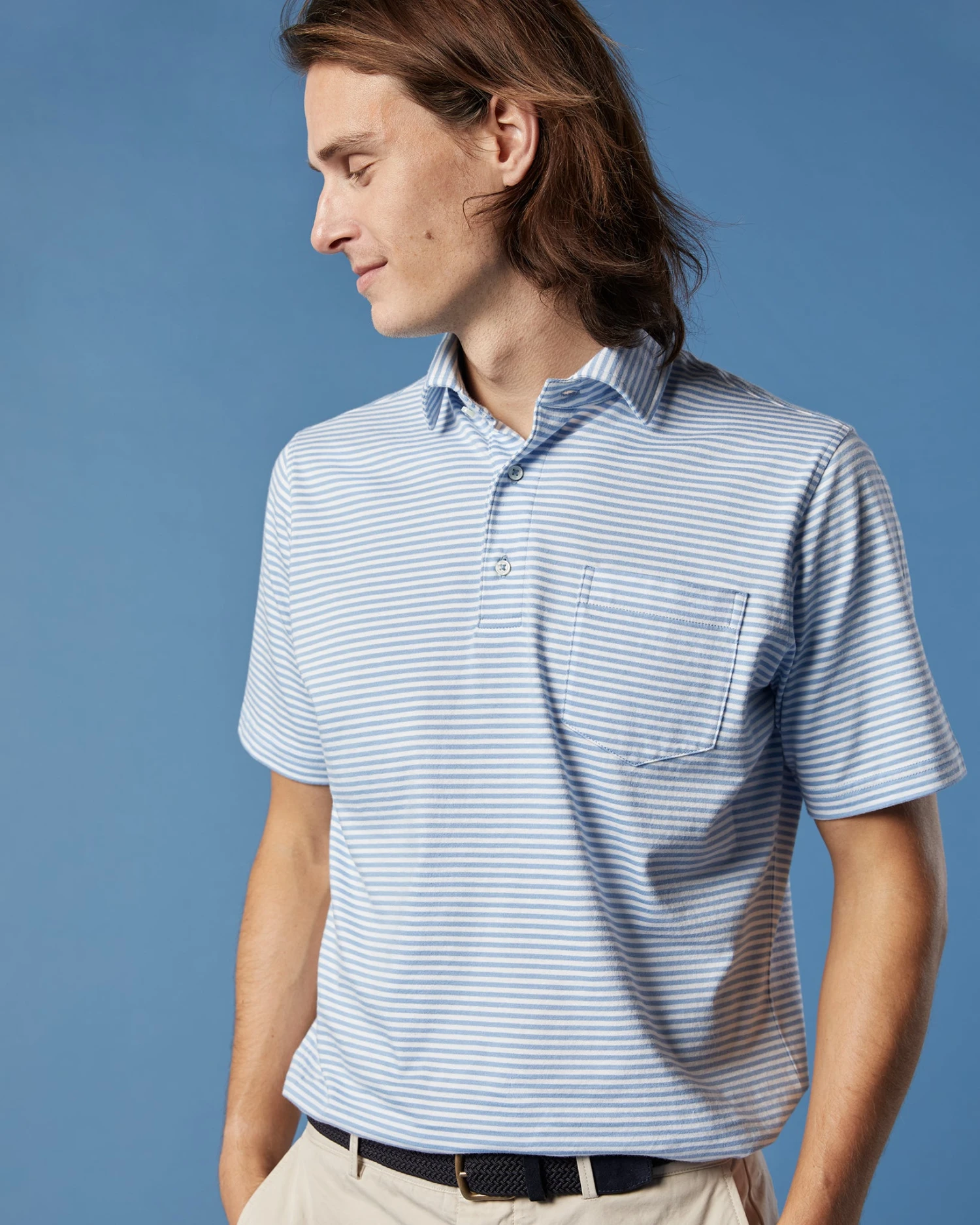 Short-Sleeved Polo In Coastal/White Stripe Jersey