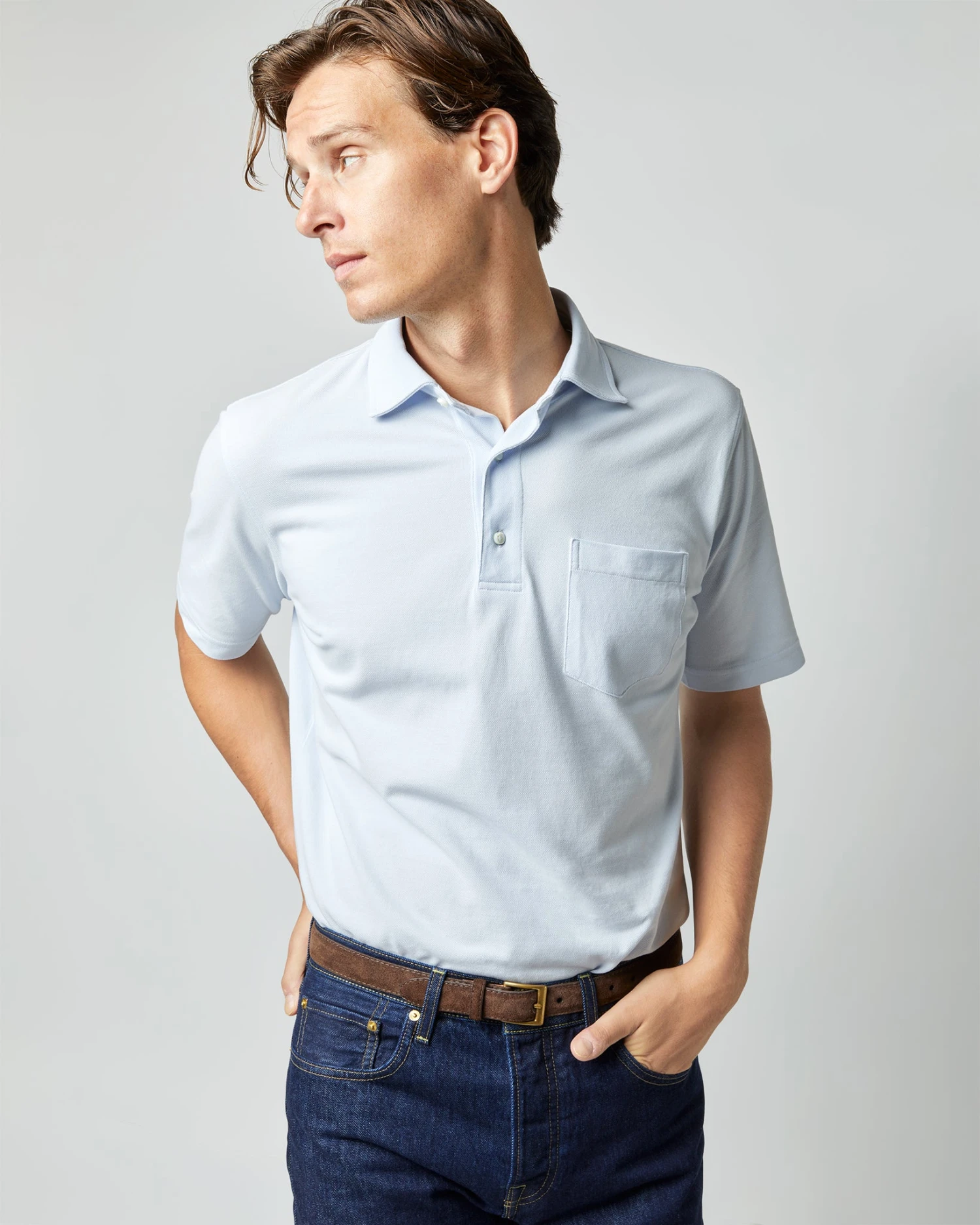 Short-Sleeved Polo In Pale Blue Pima Pique