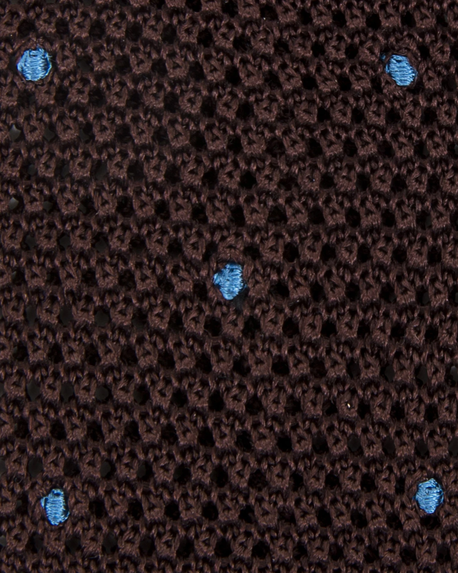 SKU: C2HVC 6094185726138 Categories: Accessories, Neckwear Tags: Color_CHOCOLATE/FRENCH BLUE DOT, LineDescr_Mens, NEST Silk Knit Tie - Dot, StyleNumber_S19697