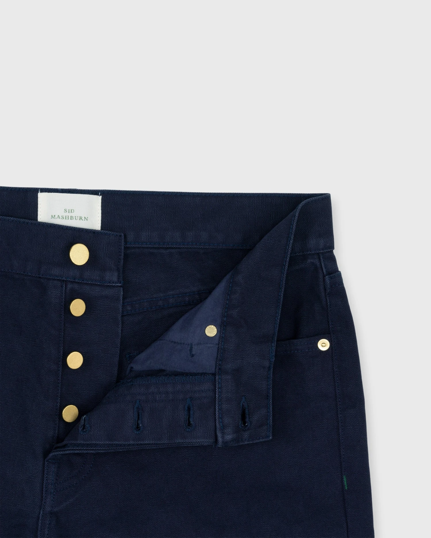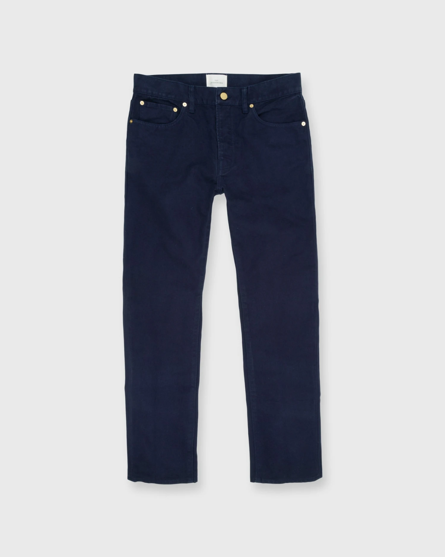 A garment-dyed pair of our favorite jeans, made up in a super-dense-but-not-too-heavy canvas… a workhorse without the weight. They’ll continue to soften up over time, so don’t be put off by the initial stiffness (though the dyeing process has taken the edge off, which gives you a jump-start on the wear-in process.) Just like all of our 5-pockets, the shape riffs on two other longtime favorites: think Levi’s 501s with more taper, APC New Standards with more room in the rise, and slimmer than both from the knee down. There’s also blue oxford pocketing, a button fly, brass rivets, chain-stitched hems, and clean, unbranded back pockets.