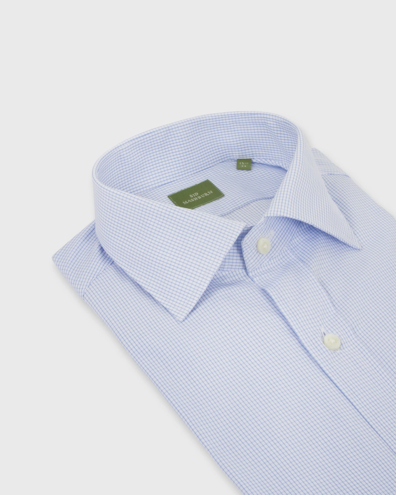 Spread Collar Dress Shirt In Sky Graph Check Poplin