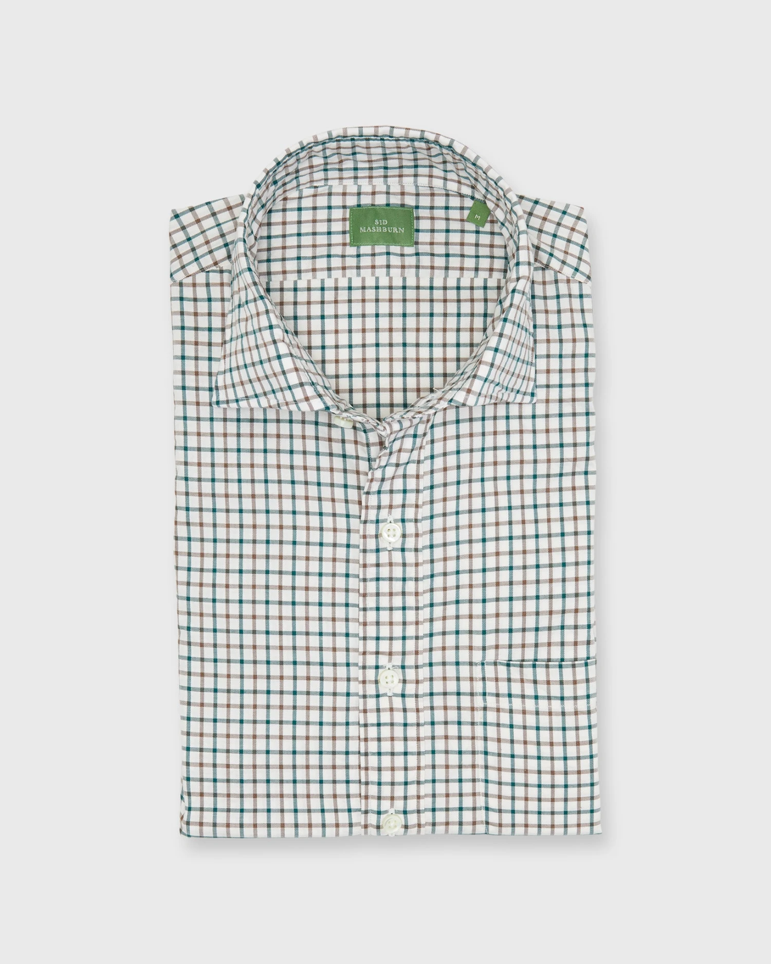 Spread Collar Sport Shirt In Bone/Hunter/Brown Tattersall Brushed Twill