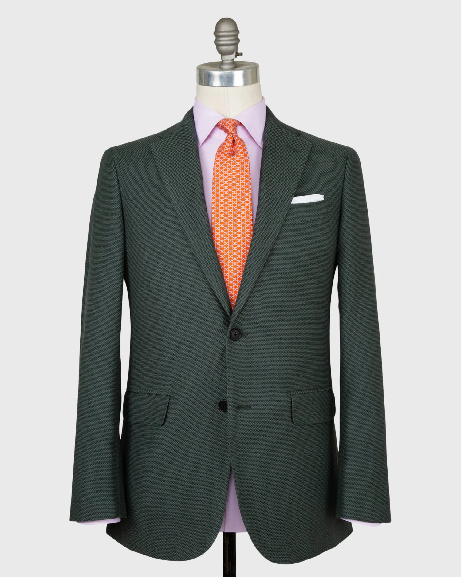 Leno-weave hopsack makes this one of the hardest-working jackets we’ve got… fantastically durable for four-season wear, with a slightly open weave and a special texture. (In fact, we developed the fabric ourselves, so you won’t find it anywhere else.) It’s been garment-dyed to a sprucey shade of green that’s easier to wear than you think. The No. 2 jacket make is fully canvassed, with a lightweight, single-layer canvas that’ll mold and meld to your body (in a sportier, easier way than our more structured Nos. 3, 4, or 5,) with pickstitched, spalla camicia shirtsleeve construction. And our Virgil model has a natural shoulder, a 3-roll-2 lapel, and a shorter body with no front darts at all. Think old-school ‘sack jacket,’ but sexier. It’s got a slightly more American feel than the Kincaid or the Landry, but just like all of our tailored clothing, it’s designed to take you from Mississippi to Manhattan to Milan without looking or feeling out of place.