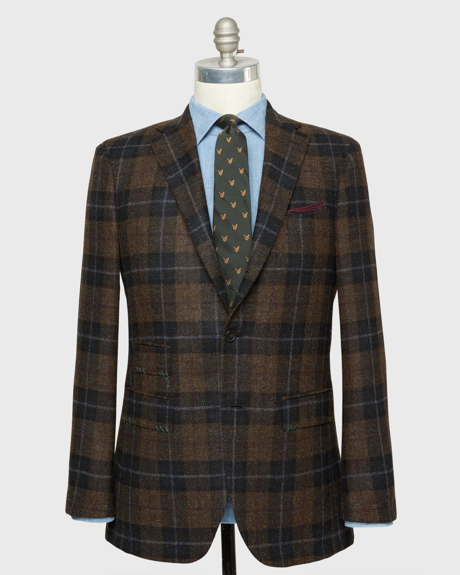 Virgil No. 3 Jacket In Brown/Coal/Blue Plaid Tweed