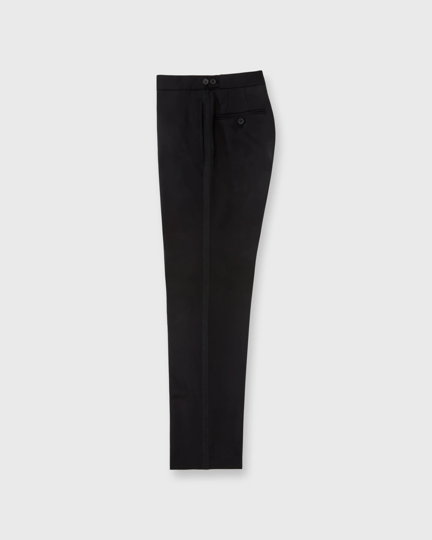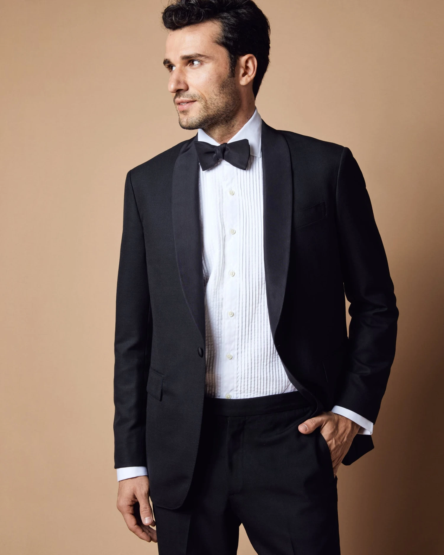 This tuxedo is the black-tie and shawl-collared version of our classic Virgil No. 3 suit. The jacket has full canvas construction — the sine qua non of tailoring — with a special, structured 3-layer canvas that’ll mold and meld to your body over time, a natural shoulder, a single-button front trimmed in silk grosgrain, a center vent, and a shorter body with no front darts at all. Think old-school ‘sack suit,’ but sexier. (Or in this case, ‘sack tux’?) The trousers are, as usual, cut on the slimmer side with a matching grosgrain stripe down the side and side adjuster tabs at the waist for the perfect fit. It’s made of a really beautiful wool plainweave from England that sets it apart from all the ghosts of rentals past… the kind of tux you’ll get excited about wearing. And just like all of our tailored clothing, it’s designed to take you to black-tie events in Mississippi, Manhattan, and Milan without looking or feeling out of place.