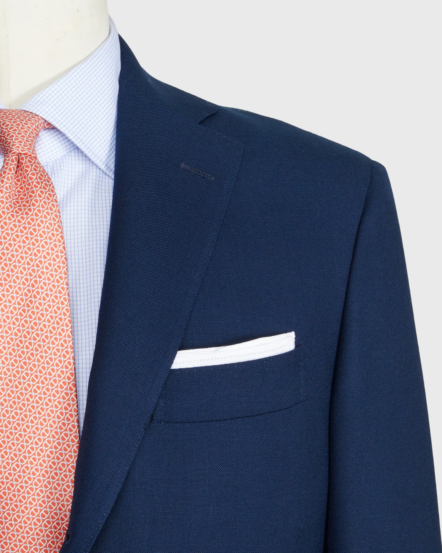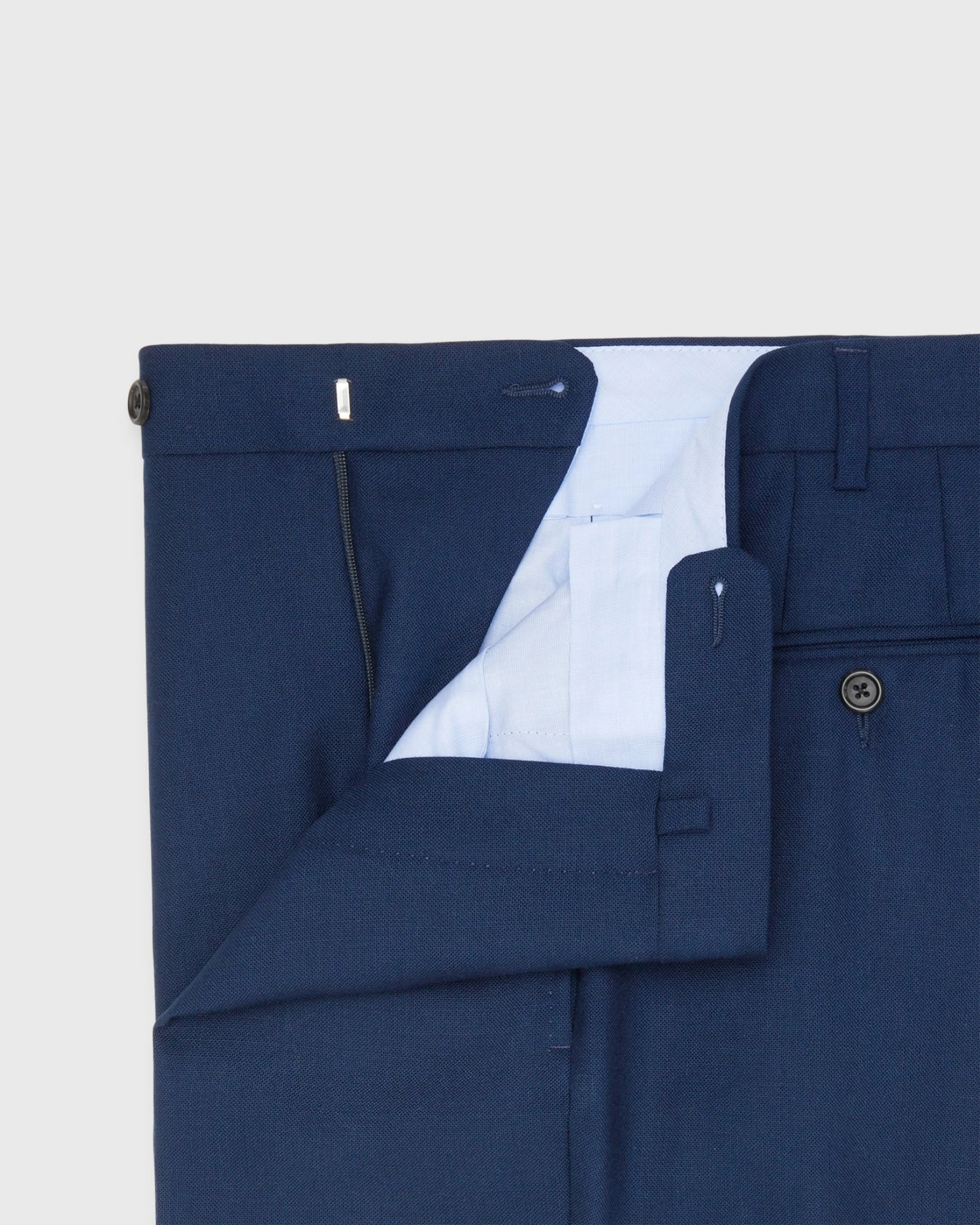 If you’re on the hunt for something a hair different from a standard navy suit, this might be itβ¦ this shade of blue has some energy to it without going too far off the rails. It’s made of an incredibly easy-to-wear, go-anywhere tropical wool from England with excellent breathability. The No. 3 jacket make has full canvas construction β the sine qua non of tailoring β with a special, structured 3-layer canvas that’ll mold and meld to your body over time. And our Virgil model has a natural shoulder, a 3-roll-2 lapel, and a shorter body with no front darts at all. Think old-school ‘sack suit,’ but sexier. It’s got a slightly more American feel than the Kincaid or the Landry. The trousers are cut in our original plain-front shape to complement the jacket, with a trim-but-not-tight leg that looks great with a cuff. But just like all of our tailored clothing, it’s designed to take you from Mississippi to Manhattan to Milan without looking or feeling out of place.