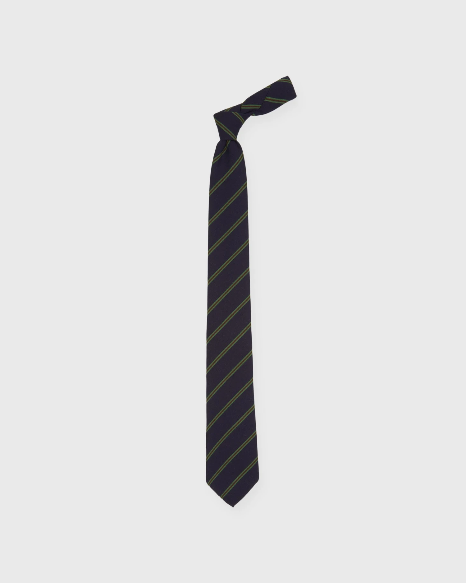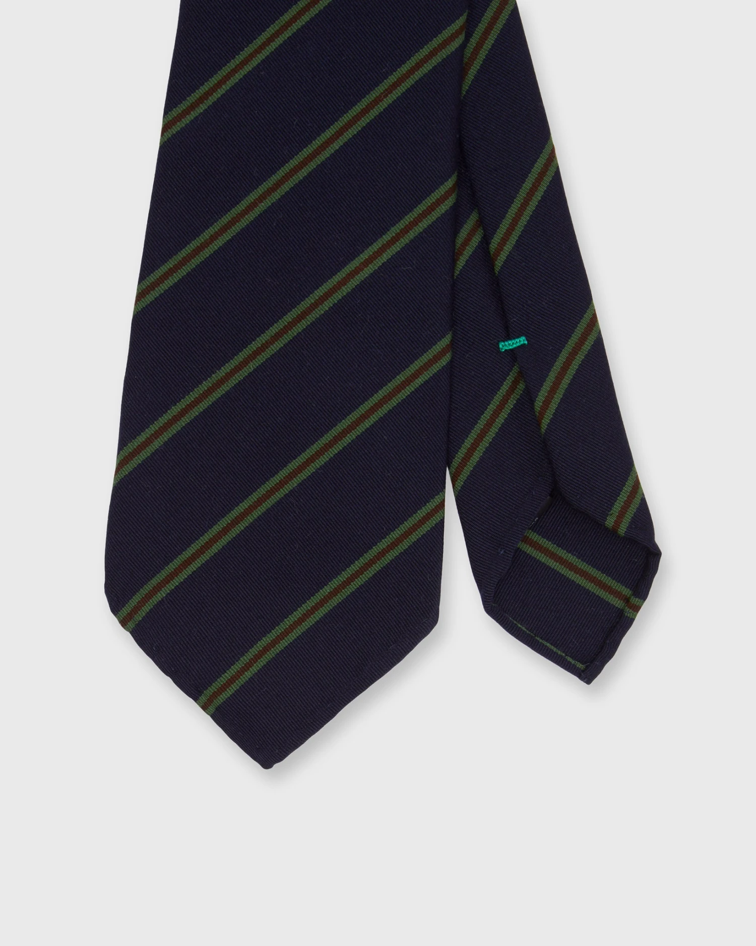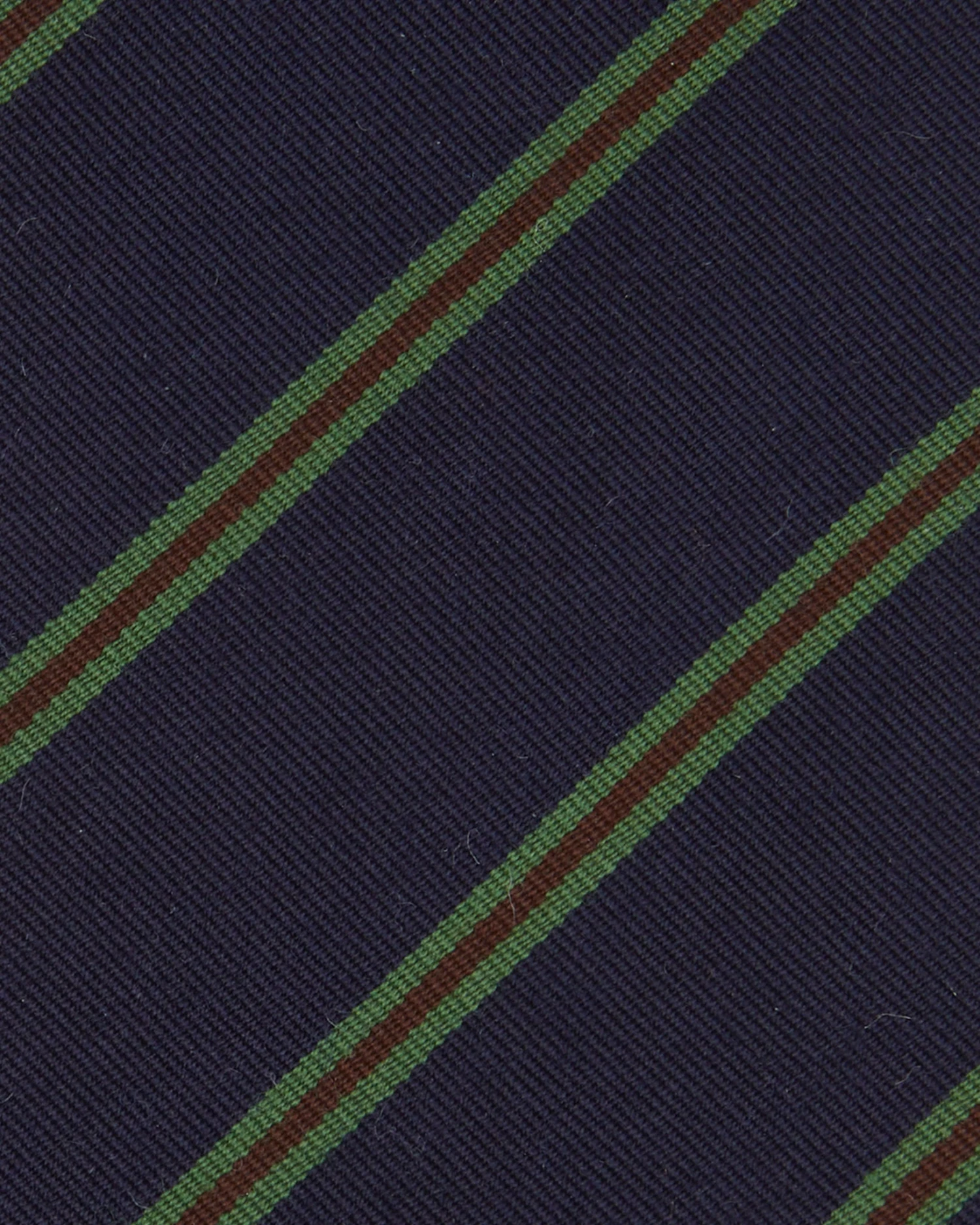 Wool/Cotton Woven Tie In Navy/Moss/Brown Stripe