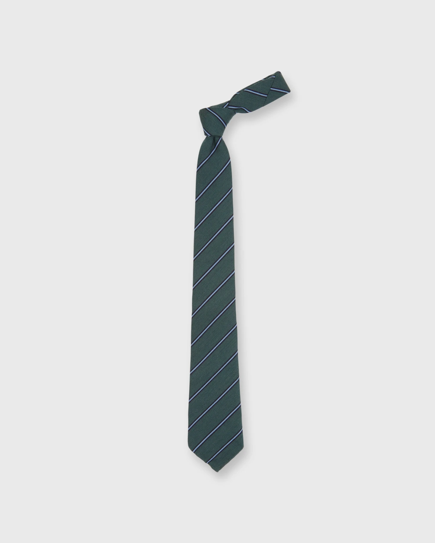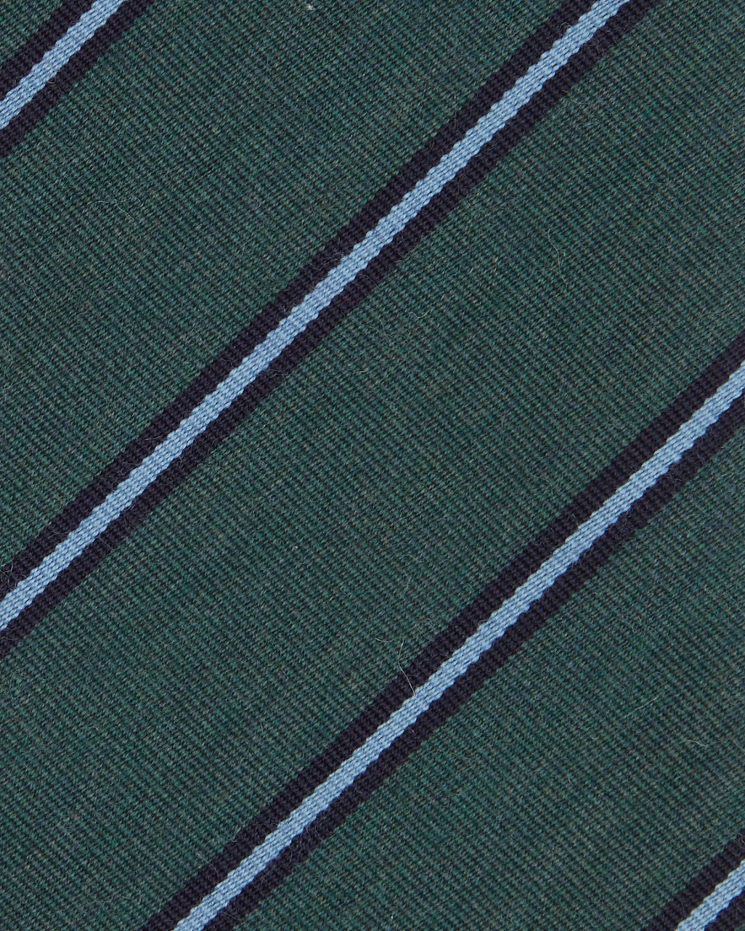 Wool/Cotton Woven Tie In Spruce/ Navy/Sky Stripe