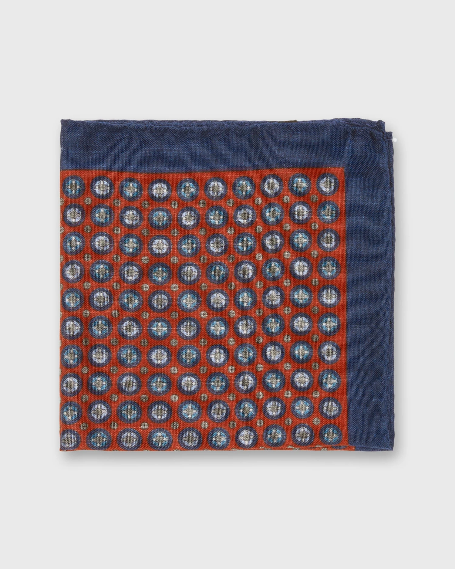 Wool/Silk Pocket Square In Denim/Brick Medallion