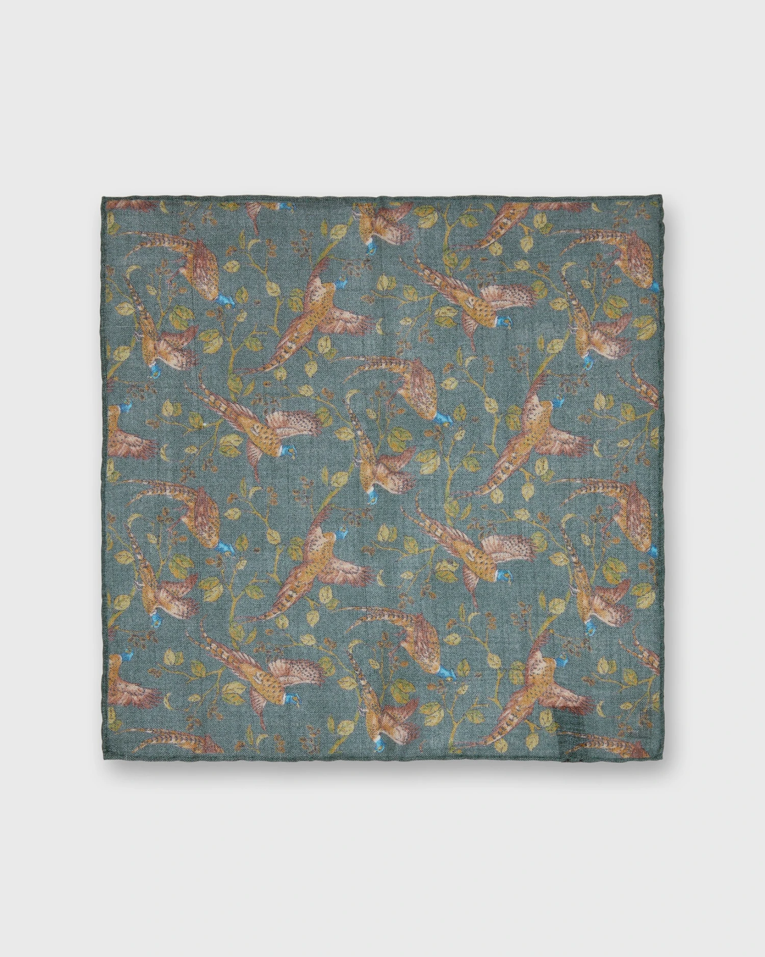 Wool/Silk Pocket Square In Heather Lake Pheasant