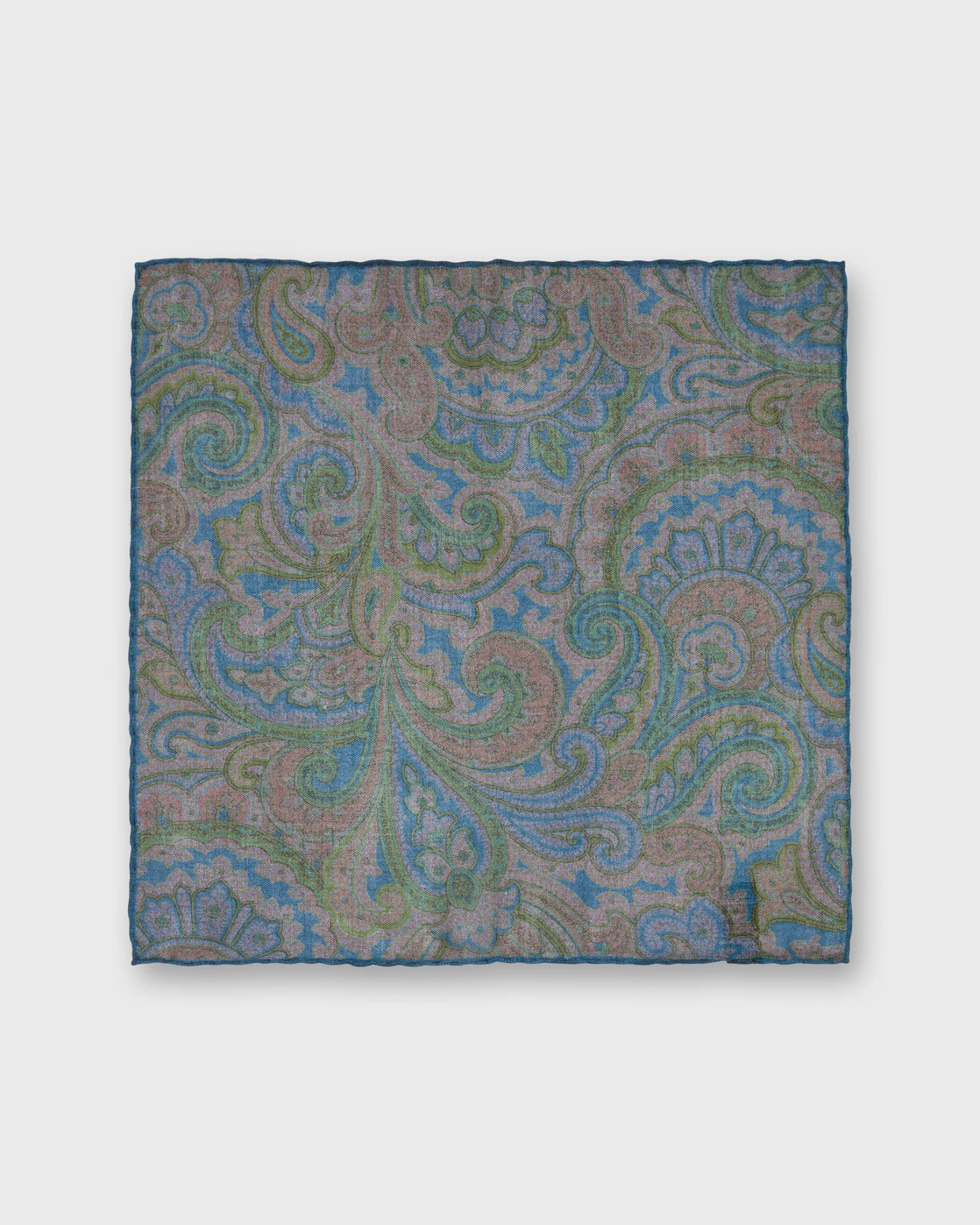 Wool/Silk Pocket Square In Lovat/Navy Paisley