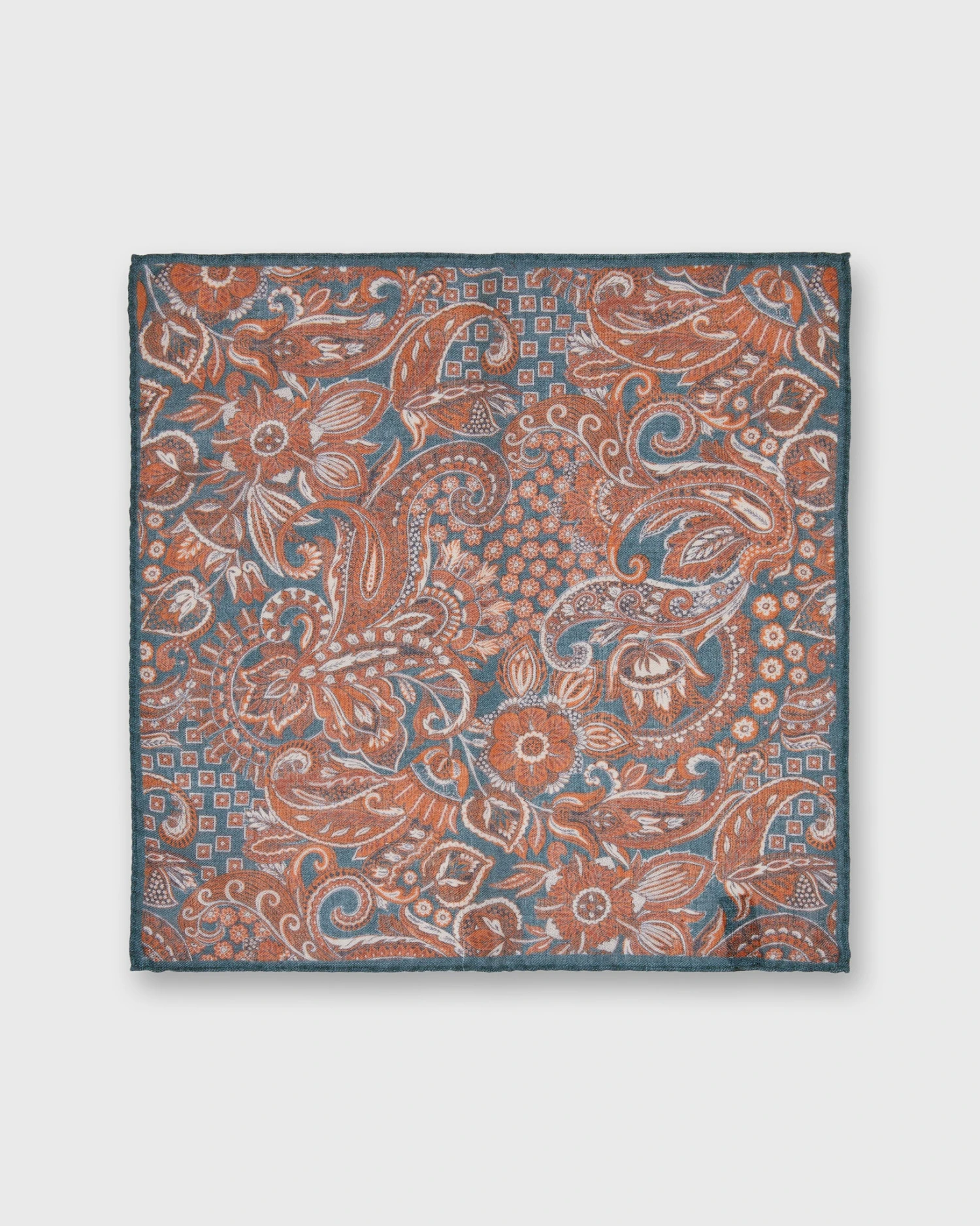 Wool/Silk Pocket Square In Lovat/Orange Floral
