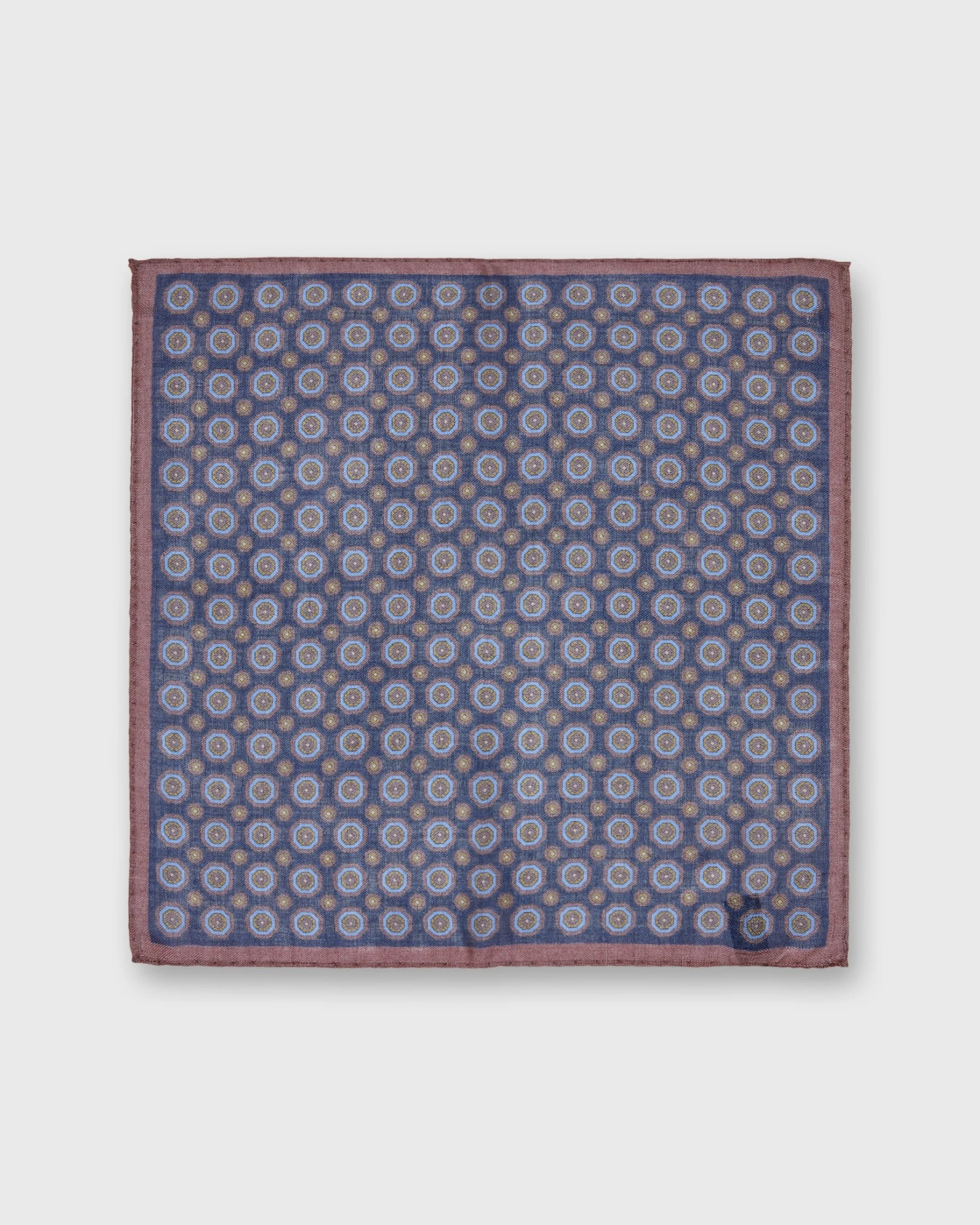 Be the first to review “Wool/Silk Pocket Square In Navy/Rose/Yellow Medallion” Cancel reply