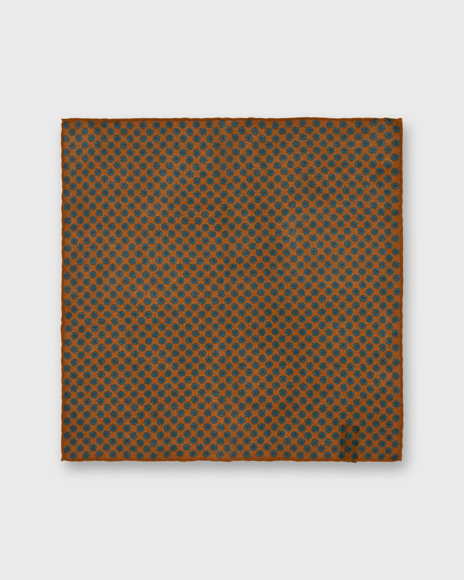 Wool/Silk Pocket Square In Orange/Blue/Brown Flower