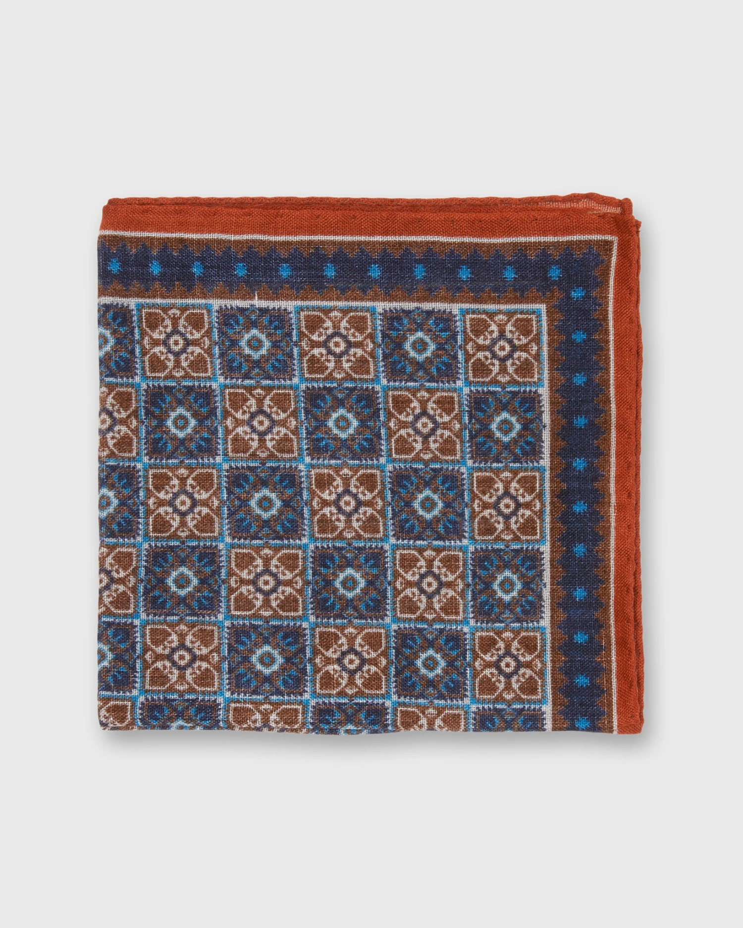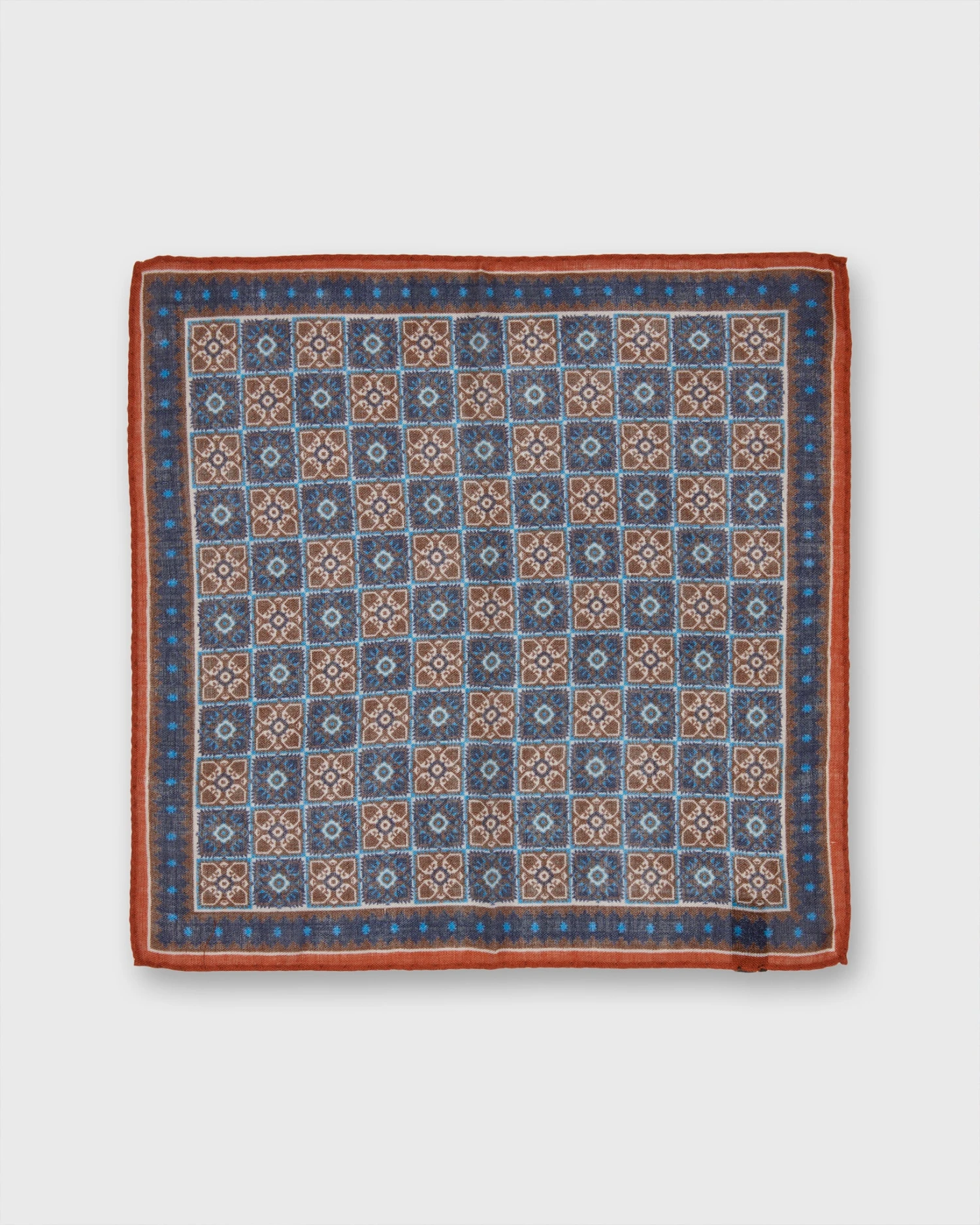 Wool/Silk Pocket Square In Orange/Blue Mosaic