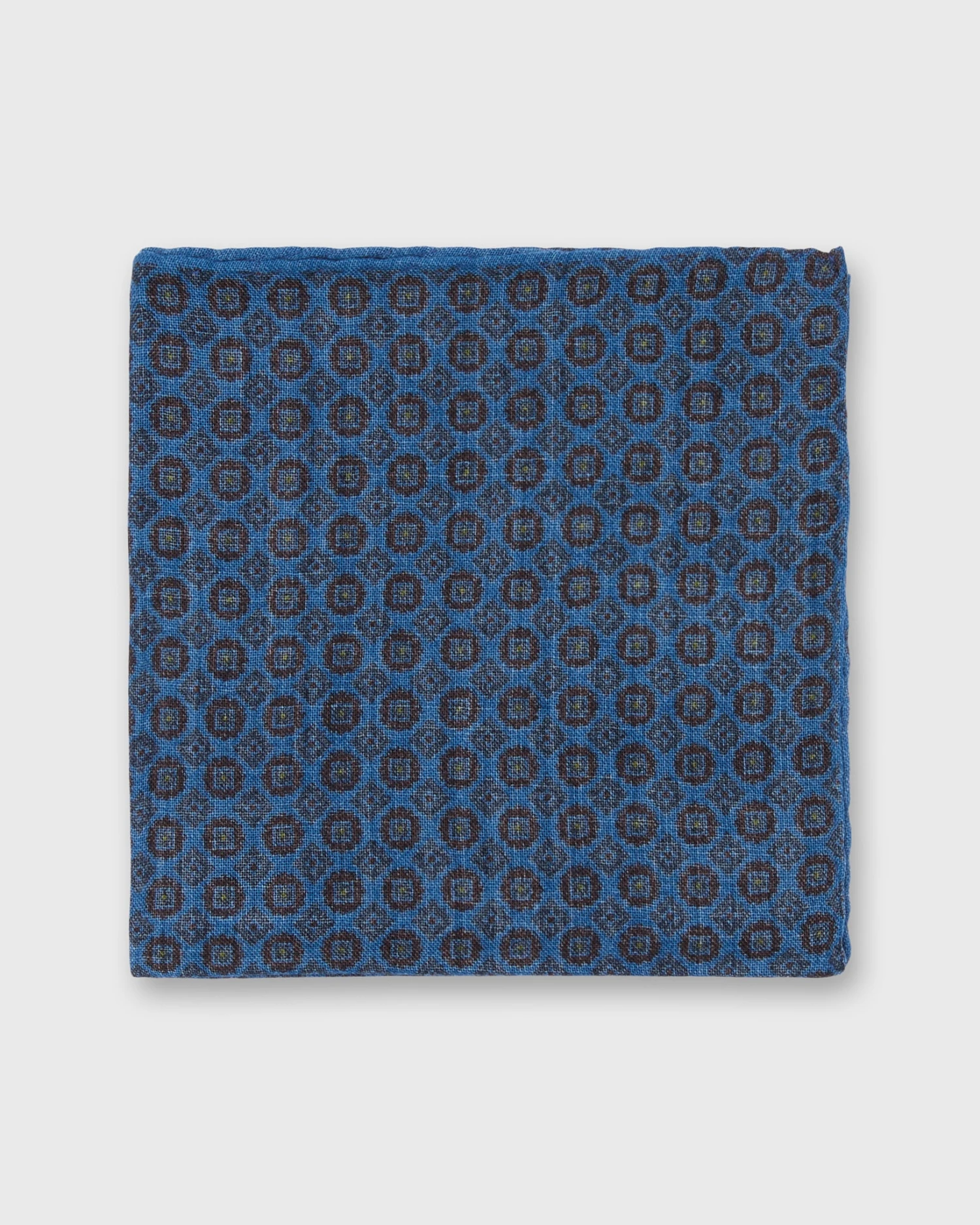 Wool/Silk Pocket Square In Periwinkle/Brown Foulard