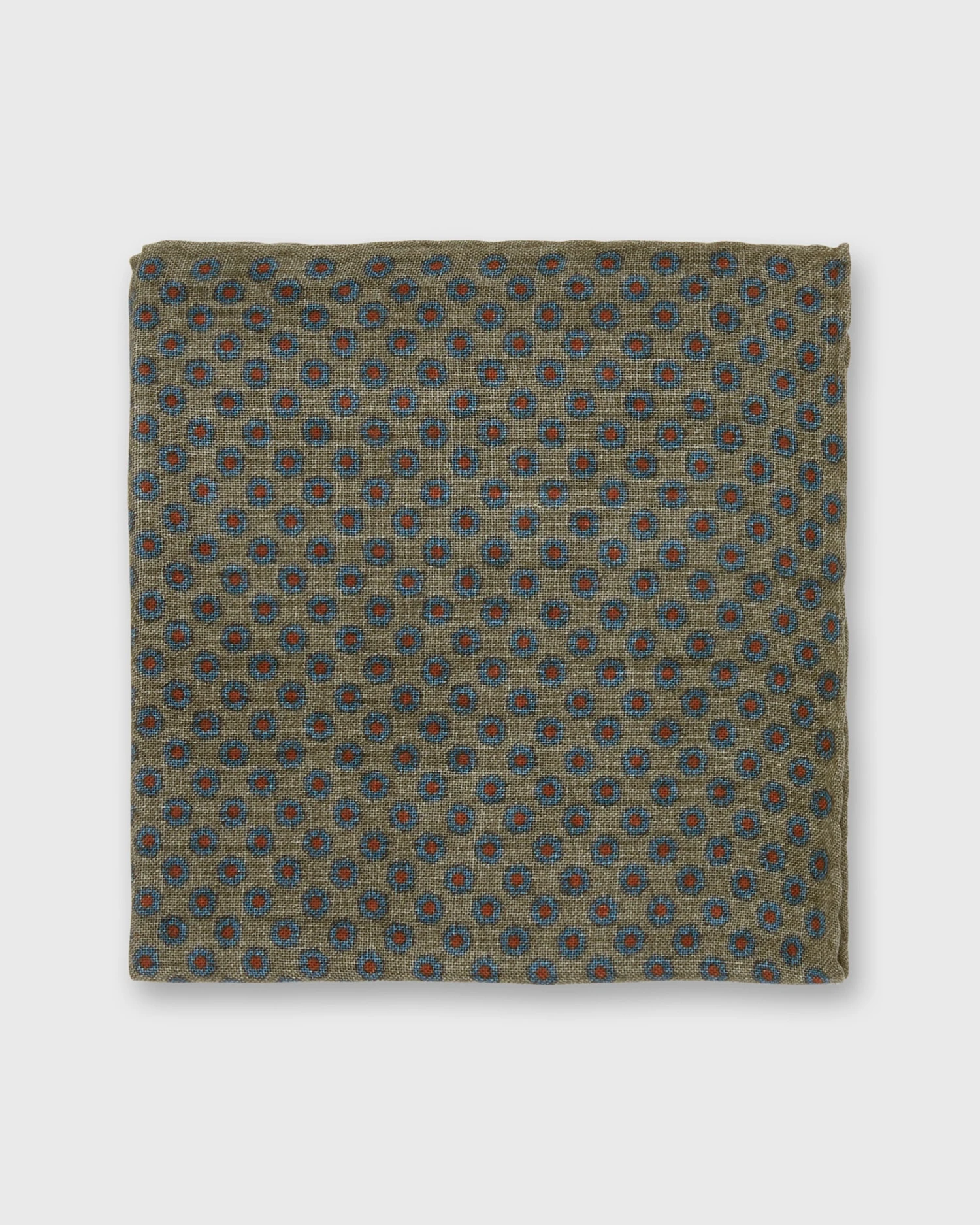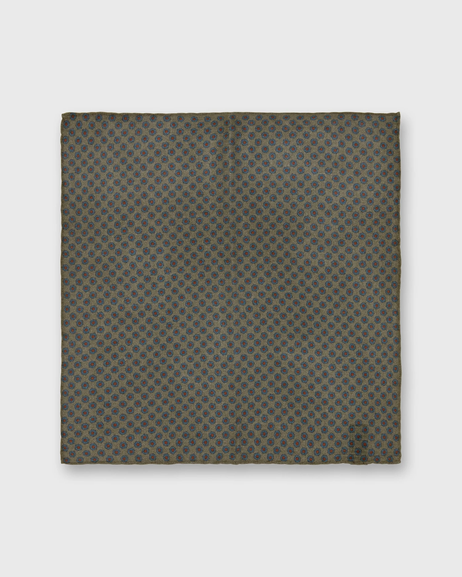 Wool/Silk Pocket Square In Stone/Blue/Red Flower