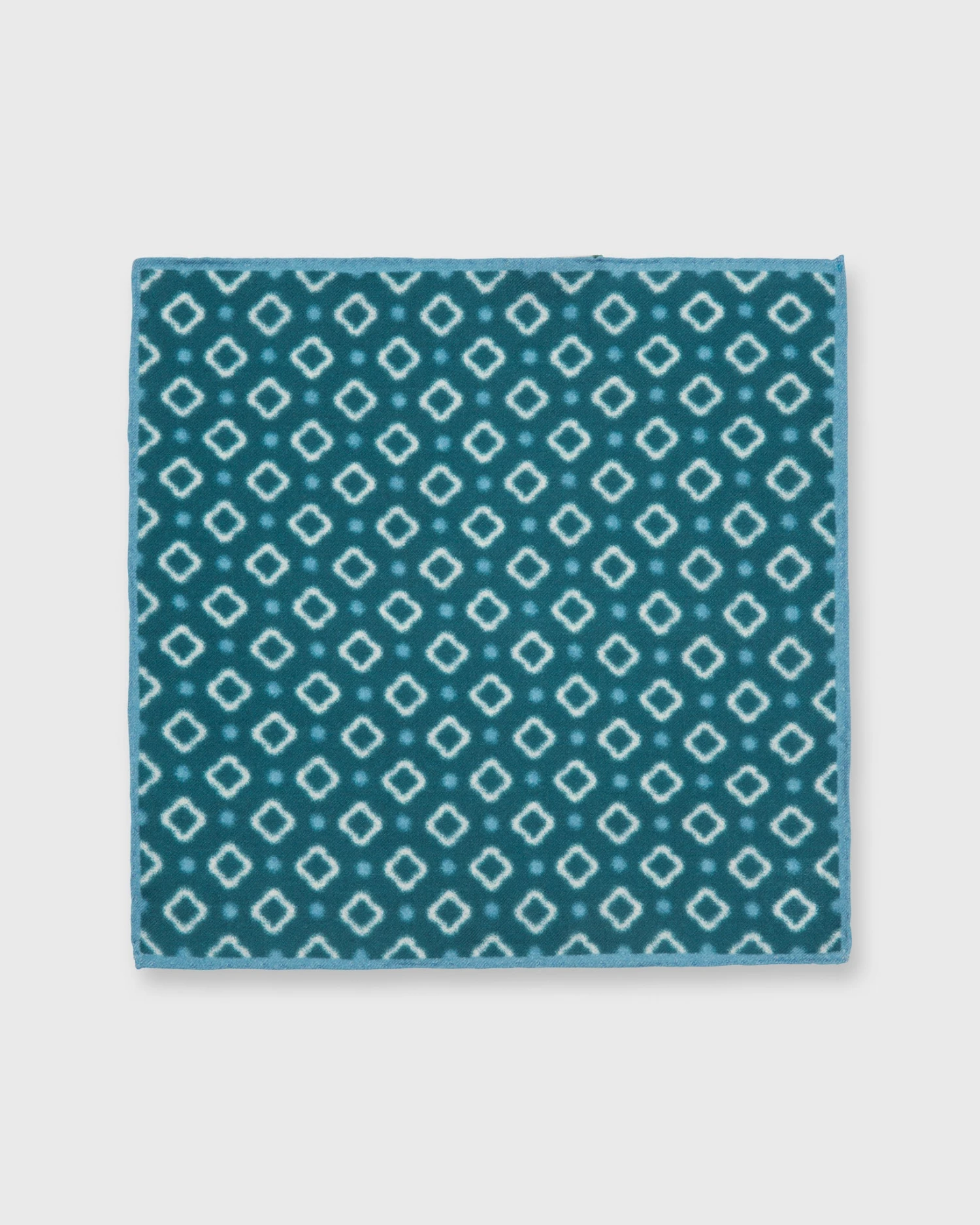 Wool/Silk Print Pocket Square In Forest/Lovat Blue/Bone Diamond